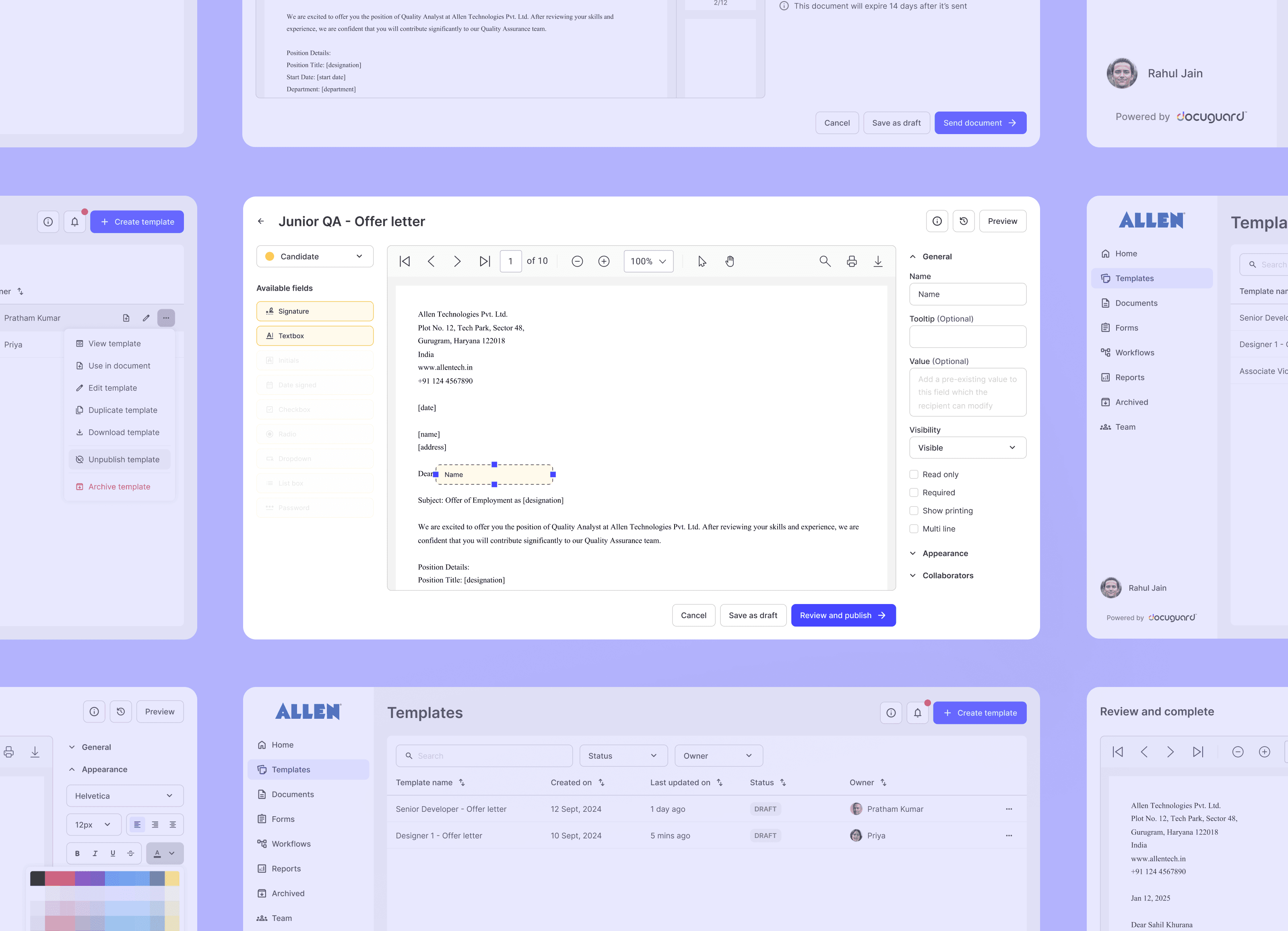 These insights shaped our prioritization for features like template management, intuitive document flows, and clearer communication mechanisms.